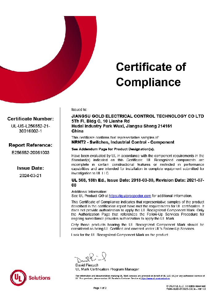 SAP型-UL-CUL-認(rèn)證證書