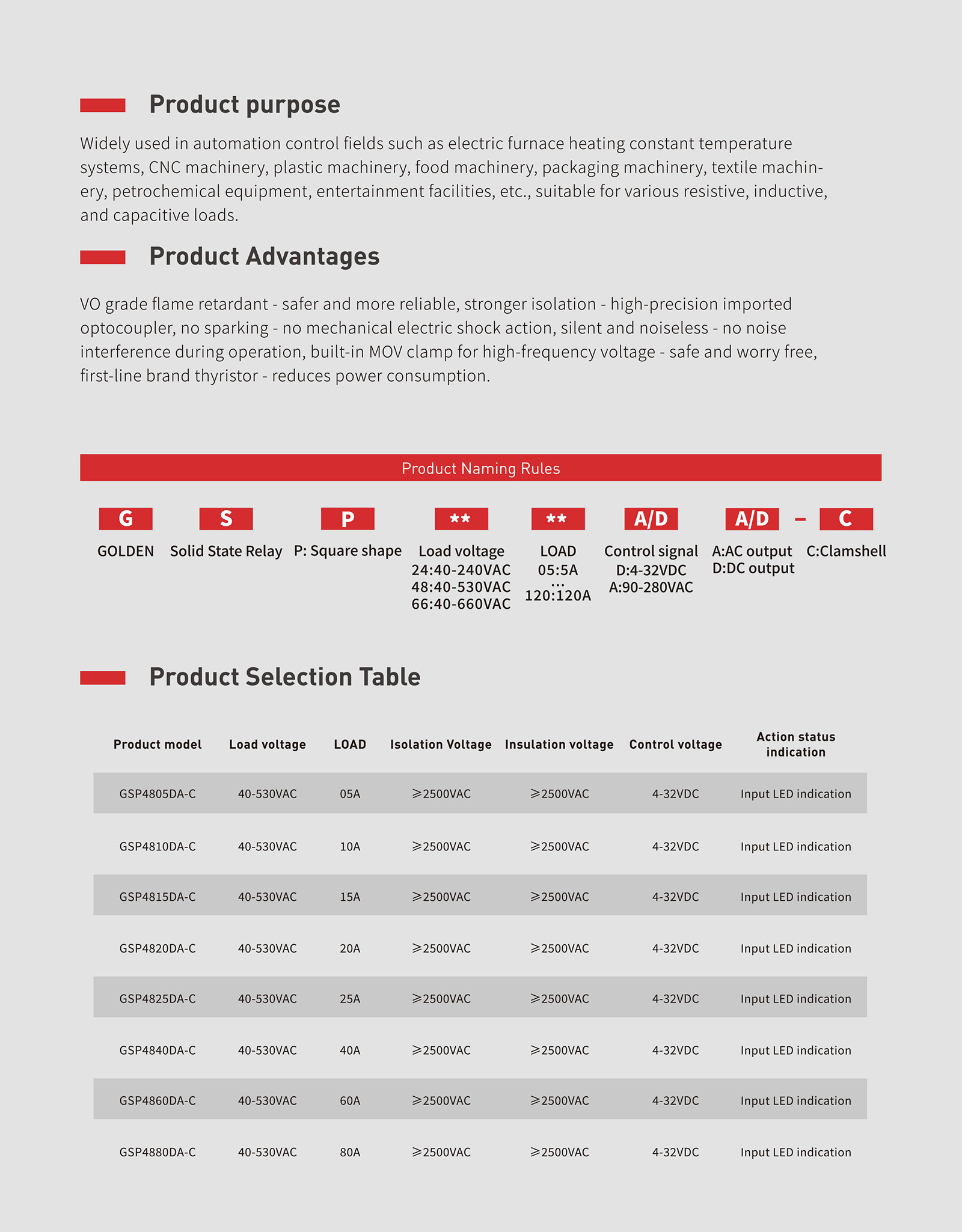 美國(guó)GOLDEN高登電氣 GSP53XXDA-C 單相臥式 SSR